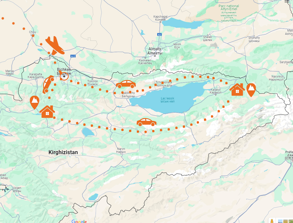 Suussamyr - Jyrgalan / Batken - Issyk-Kul / Kirghizistan.